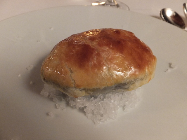 キスとそば粉のベニエ 黒ラッパ茸のソース