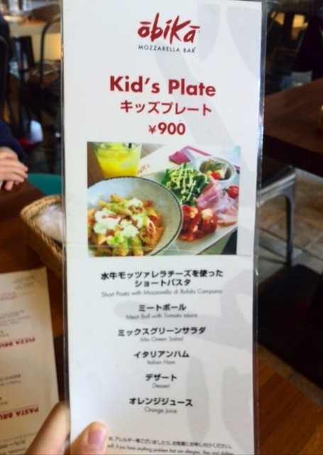 キッズプレート、前回は知らなかったので(隣のファミリーも「あんなのあるんだ…」って言ってたし)ちゃんとメニューにはさんでおいてほしいです。モッツァレラののったショートパスタ、ミートボール、サラダ、ハム、フルーツ(シロップ漬け?)、オレンジジュース。2歳の長男はもちろん完食。