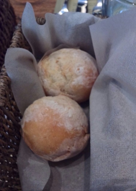 2月の祝日、再び訪問。今回は全てアラカルトで、生ハムとモッツァレラの盛り合わせ(2980円)、タルトゥーフォ(3600円)、ラザニア(1900円)、キッズプレート(900円)、ティラミス(950円)をオーダー。コペルト代(350円)が二人分かかるようになり、なかなか美味しいころんとしたパンがふたつ出てきました。