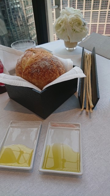 そして、ほかほかの大きなカンパーニュとグリッシーニ。オリーブオイルはワゴンに乗せられた中から、説明受けながら二種選べます。重め、軽めに始まり、イタリア産、スペイン産、そして熊本産などなど。小豆島じゃないんだー。