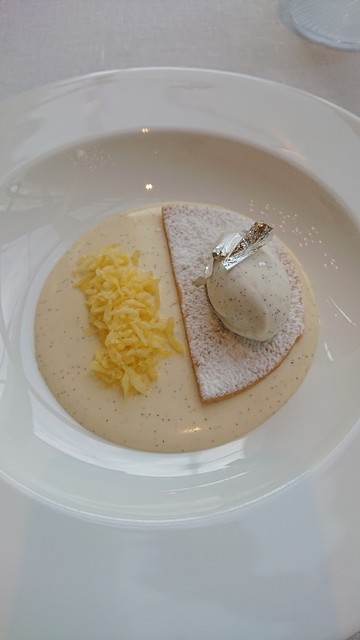 デザートはバニラがテーマ。ぽってり濃厚なバニラクリームにさくさくの薄い焼き菓子、バニラアイス。シンプルで上品な一品でした。