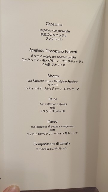 ルーフトップのアフターヌーンティーや、チョコレート買いにきたことはあるけど、リストランテは初めて。目の前にカルティエのビルが立ち、眼下に中央通り。足元まで窓で自然光たっぷりなモダンさが好き。