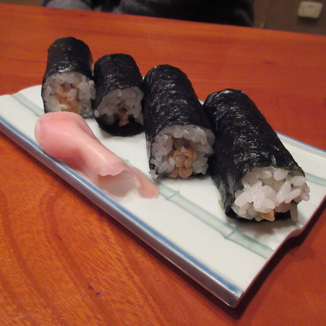 〆には初めて頂く巻き物「トロタク」と「ひもきゅう」!