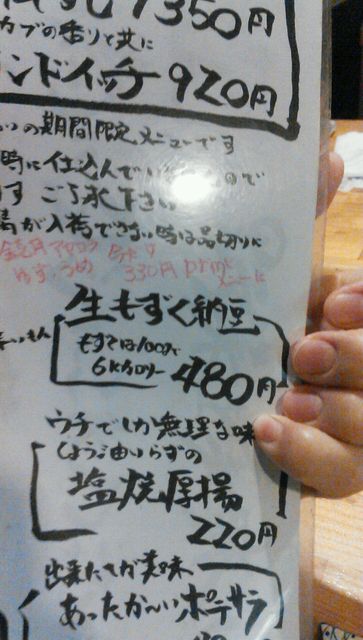そして実は初めて注文した、もずく納豆。これ、ただ納豆と生もずく合わせただけではなく、お出汁多めの胡麻油少し効いてる?