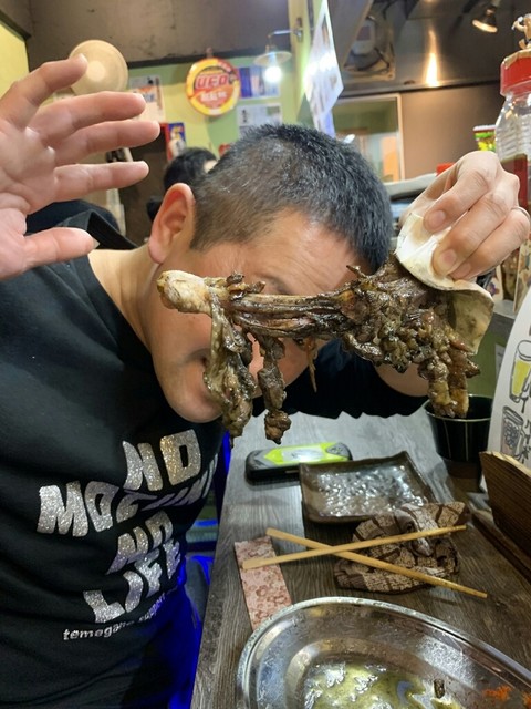 その間に、料理も注文。これも、かなりおすすめとのことで、骨付き鶏の炭火焼き。