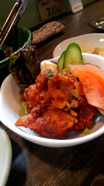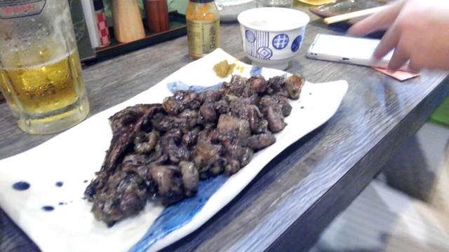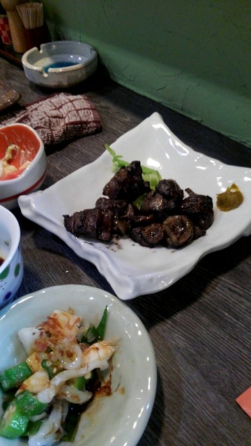 先付け食べて、ふわとろ肝炭火焼き。鶏たたき、ごぼう揚げ、チキン南蛮。どれも安定の美味しさ。