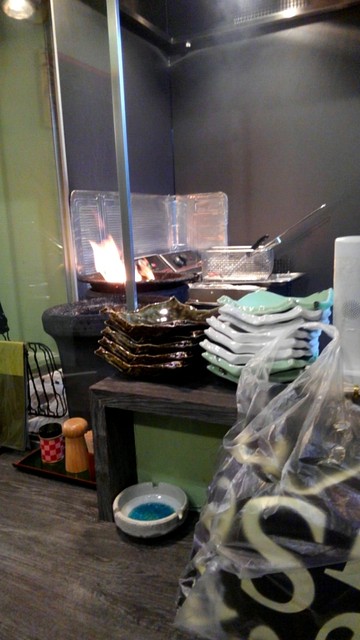 カウンターで炭火焼の炎を見ながらの炭焼き地鶏はたまらなくお酒進みます!