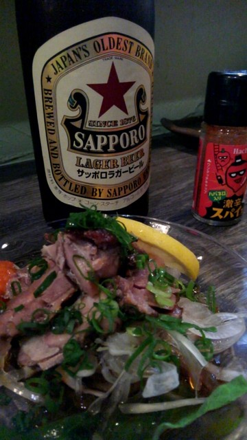 遅れてきた友人とサッポロ赤星で乾杯!!