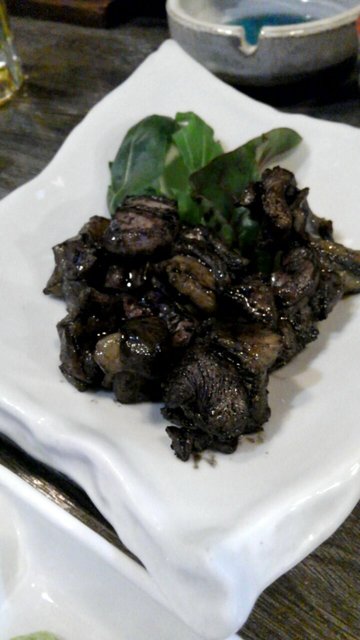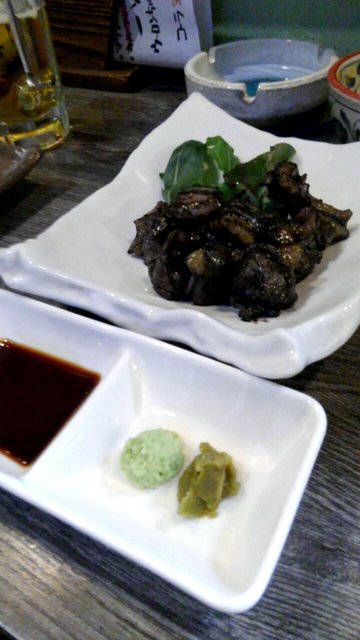 胡麻油&塩で頂きます。生肝も好きですが、これは更に旨みが増したようでたまりません!!