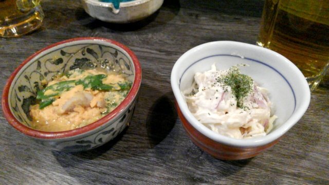 先付けは、二種類。これを二人でシェア。いつも色んなのが出てきて、美味しくて、楽しみ。