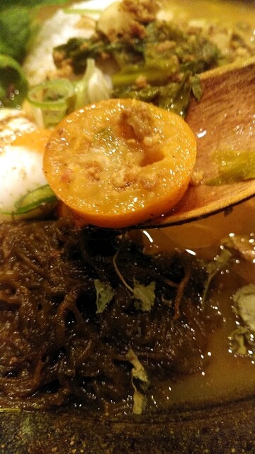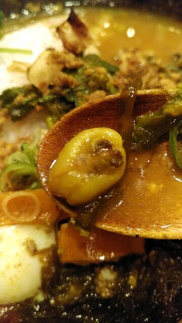カレーに使うのは珍しい生もずく。私は好きなので自宅でも、カレーもずく食べますけど(笑) でも、お店で食べるのは初めて!新もの生もずく、プリップリ食感にカレーが絡んで❤(///∇///)これは、たまらん!金目鯛との相性も良いですね。
