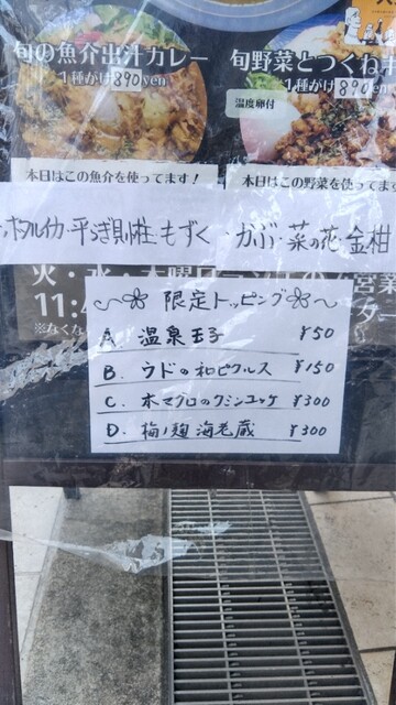 温泉玉子トッピング50円(この日より、あいがけの温玉は有料トッピングに)
