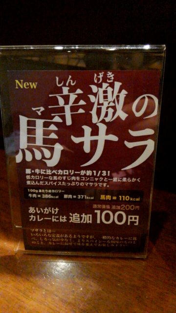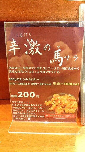 馬サラ。馬肉のスジ肉カレーは初めて頂きましたが、これ好きですね。スジ肉美味しい!!