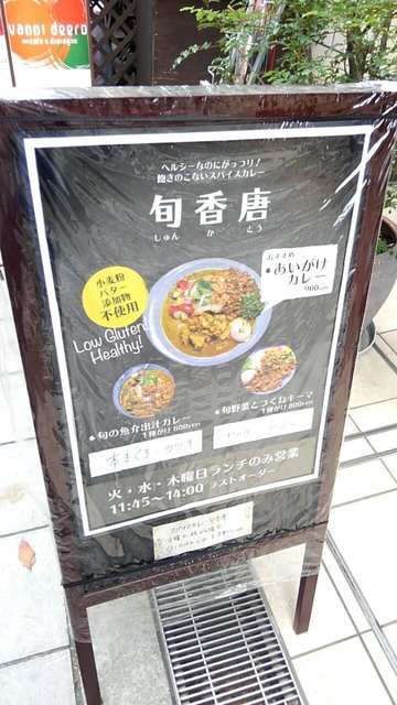 昼からlunchカレー目的で、西中島南方の旬香唐さんへ。夜は居酒屋、春夏冬(しゅんかとう)な二枚看板な人気店。