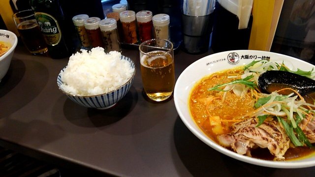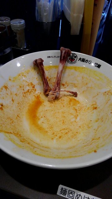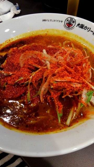 妻の辛い方は、辛いけど旨味もしっかりあり、私も、大丈夫なレベル。ただスープを勢いよく飲むと、スパイスの粒が喉にきて、むせます(笑)
