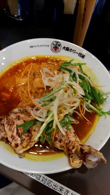 私は、ここのメイン商品、ウルトラチキンカリー拉麺。妻は激辛好きなので、スーパーhotカリー拉麺。