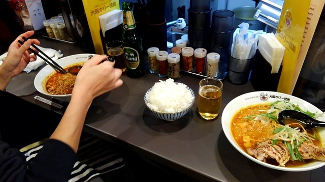 そしてふたりでシェアするので、ご飯大盛り。世界のビールも注文で、昼飲み!!