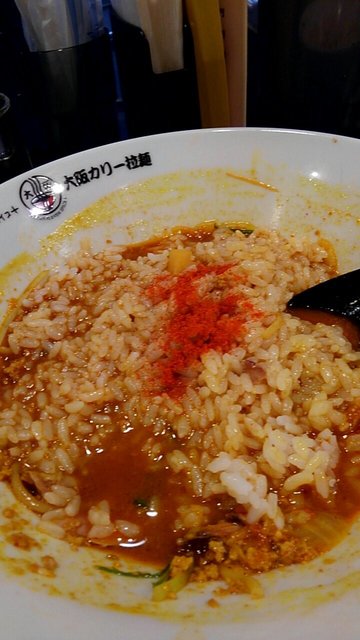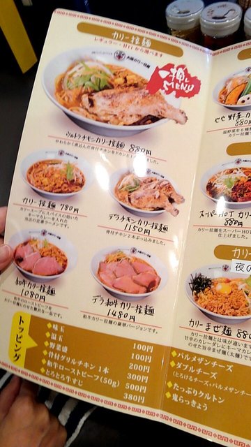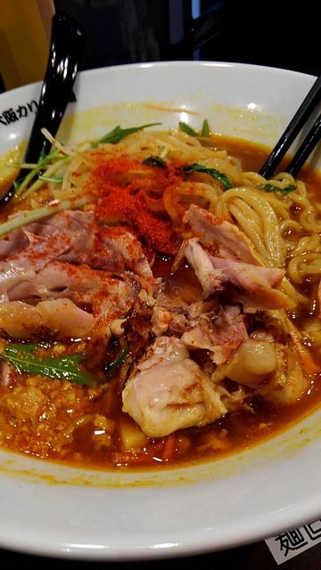 友人は、カリー混ぜ麺に、ウルトラチキン。そして、スーパーhotなる、激辛追加(笑) 激辛好きな方ですからね。