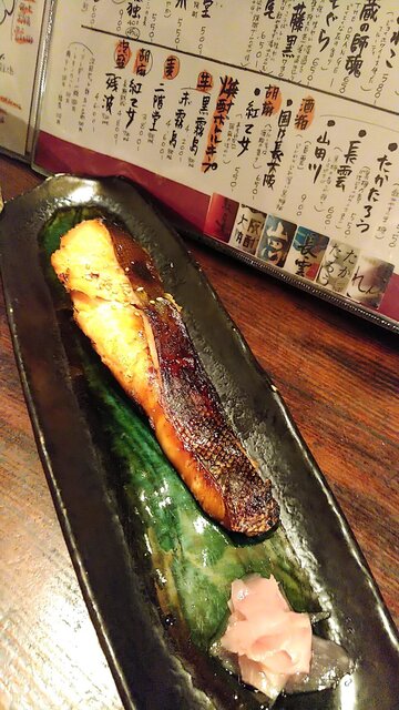 金華サーモン西京焼き、味噌漬けの魚って、うんまい❤️ですよね!白ご飯にも最適やけど、酒肴にも❤️ってことで、私は日本酒に、山口県の地酒、原田を頂きます。