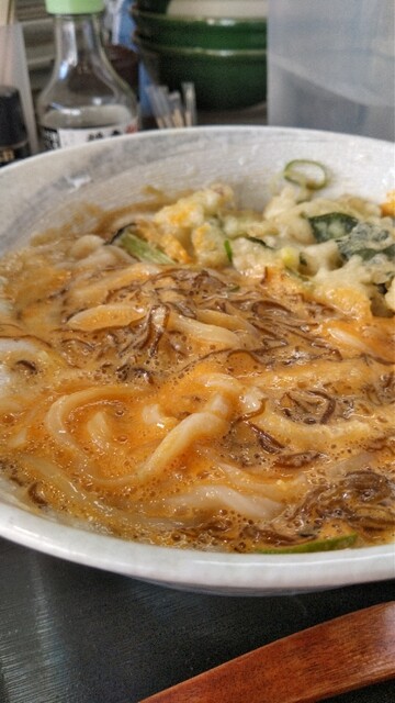 細めの饂飩と生もずくに、このカレー出汁が絡んで、たまらん美味さ!