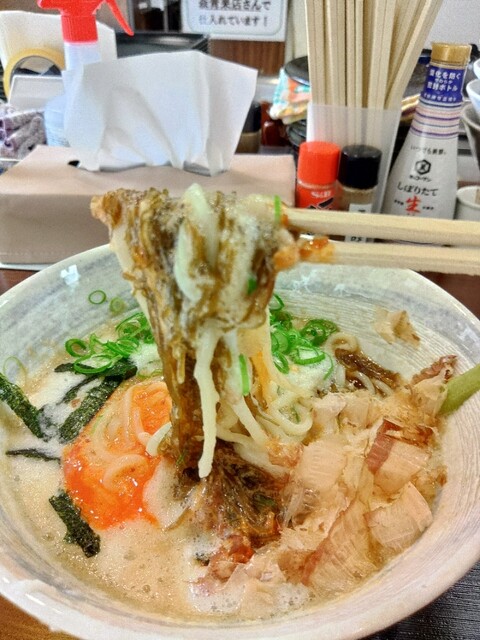 友人は店主さんに、替え玉のように、麺のおかわりっていけますか?と聞いて、店主さんから、大丈夫ですよ!!と、替え玉してもらってました。メニューには無いけど、やってくれるようです。