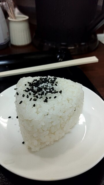 おにぎりも、谷ファームさんのあきたこまち使用。胡麻塩をかけて、お米が美味しい!これ!90円はお得です!!