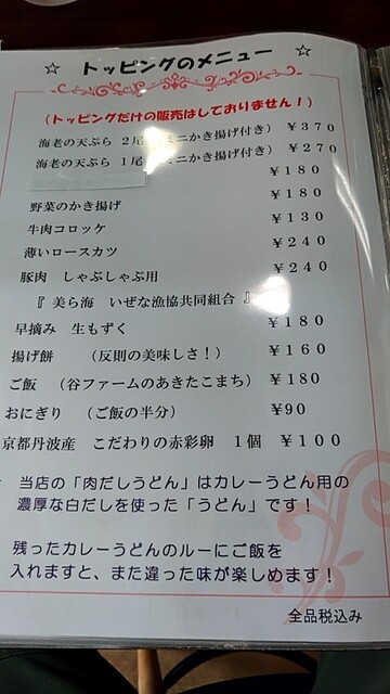 久しぶりに2人で訪問。カレーうどんも食べたいどこらですが今回は限定メニューが食べたくて、外も暑くて、メニュー写真見るだけでも美味しそすぎて(;´゚д゚)ゞ(笑)