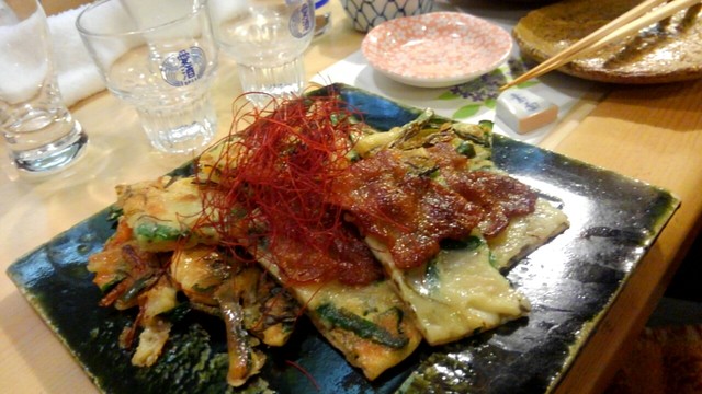 このお店お勧めの伊是名島産のプレミアムな早摘み生もずく使った、もずくチヂミも注文。