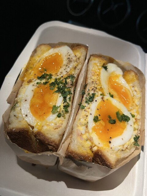 玉子サンドと固めのプリン