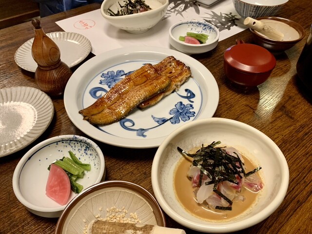 鰻の蒲焼きと鯛茶漬けをいただきました。鯛茶漬けの白米で、蒲焼きと鯛茶漬けで4杯も食べてしまい猛省
