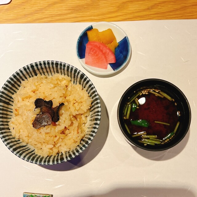 どれも素材を生かした一品で、特にブリの照焼き、黒トリュフとポルチーニ茸の炊き込みご飯は絶品でした^ ^