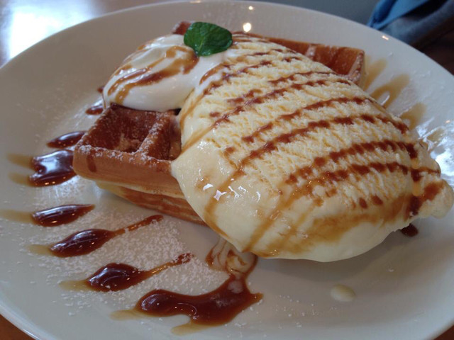 ランチセットABCの中から自分はドライカレー、連れは桜エビのペペロンチーノ、デザートにワッフルを食べました。甘い香りの中にサクサクの食感でとても美味しかったです。