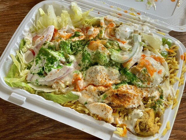 「Big Island Grillってとこでロコモコ喰ってるんだけれど、これ絶品。美味すぎて残せん!」
