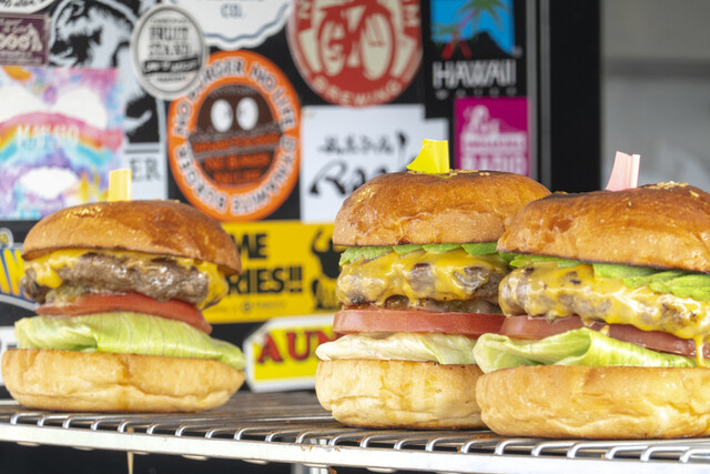 調理中の風景。アボカドチーズバーガー(1,300円)の完成。