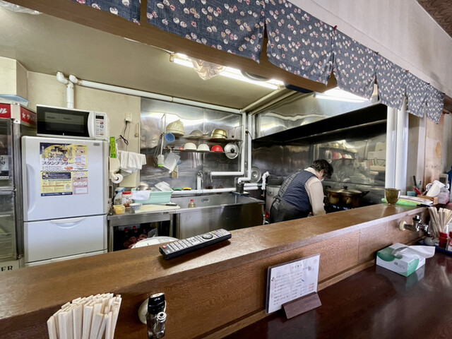 店内風景。一人でこのお店の全てを仕切る女将さんがチラリと写っています。