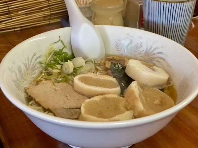 スープを一口啜っただけでカツオの強い風味を感じます。こっちは魚介系なんだ!という発見。