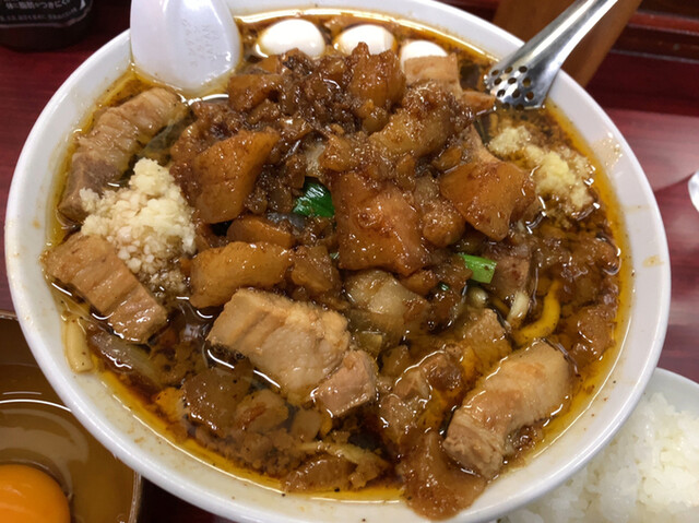 相変わらずの脂まみれ、ニンニク、ショウガ、背脂がジャンク増し、ライスの相性は流石!