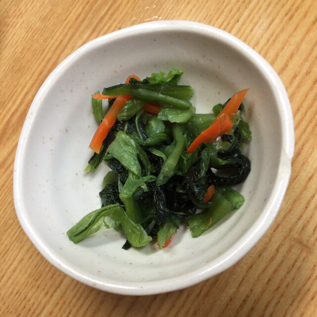 人参をキャベツで巻いてある料理なのですが、出汁と山椒で上手に味付けされています。さっぱりといただけ、箸休めにはちょうどいいですね。また、見た目の美しさは小皿料理の中でもトップクラスですね。