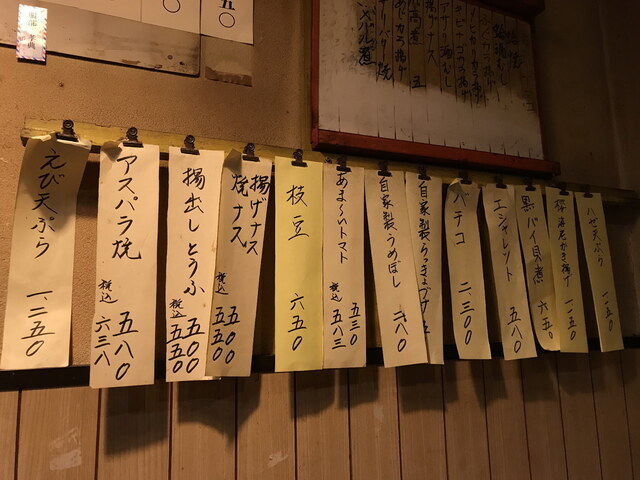 外観は、歴史ある大衆酒場という感じで、間口は狭いです。 店頭には、水槽があり、鯵が泳いでいます。更にお店の前に大量の発泡スチロール箱が積んであり、ここにも鮮魚だけでなく活魚もいるという、魚介に特化した居酒屋です。