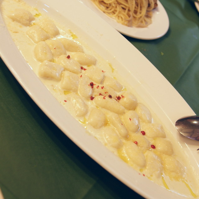 自家製のニョッキは柔らかく、お酒がすすみ、いろんな料理を楽しんだ終盤で出てきても、スルッと胃袋に収まります。クリームソースですが、軽い仕上がりになっていて女性向けですね。男性としてはもうちょと濃いほうが好みですが、これは、料理の出来というよりも個人の嗜好の問題でしょう。