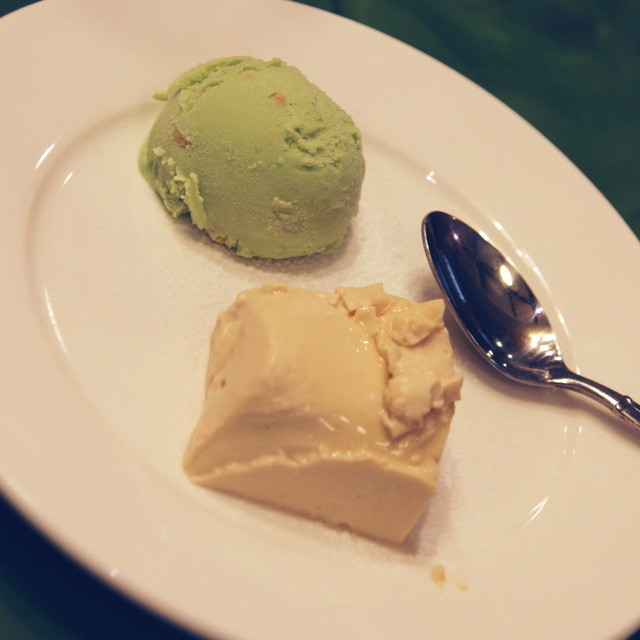 デザートは紅茶のパンナコッタとピスタチオのアイスクリームです。