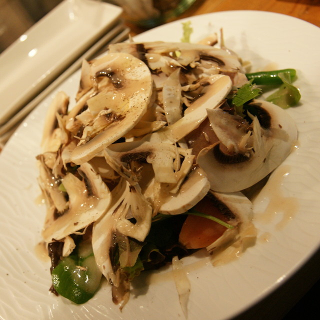 自家製と思われるドレッシングは、酸味が穏やかで、マッシュルームの素材の味を邪魔しないですね。