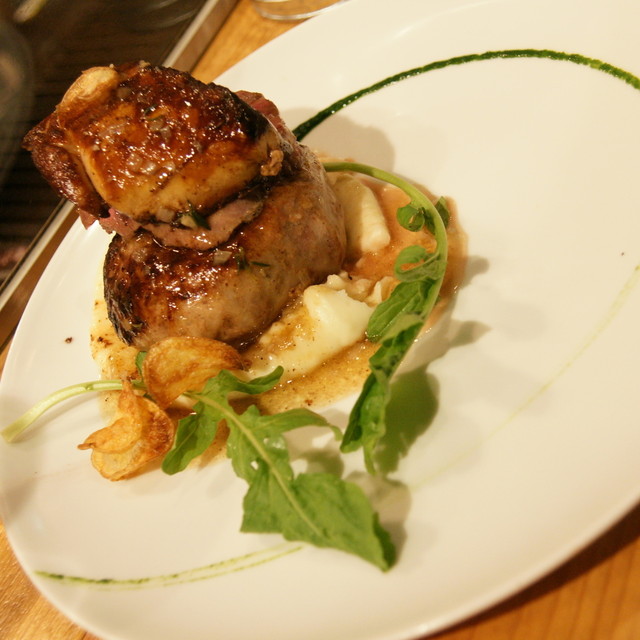 個々に素晴らしい3段重ねですが、これに合わせるソースは、鴨の骨から取った出汁と焦がしバターを合わせたもので、まさに鴨づくしの大満足な1品です。