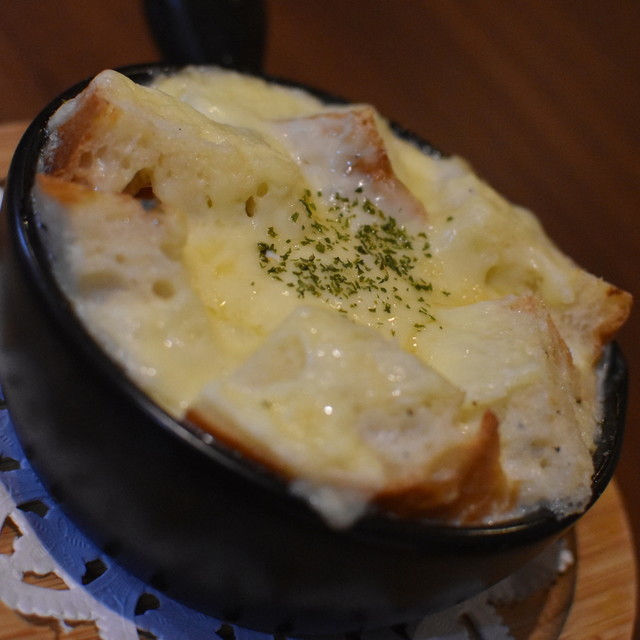 熱々のパングラタン、ゴルゴンゾーラソースで(850円)2020年8月