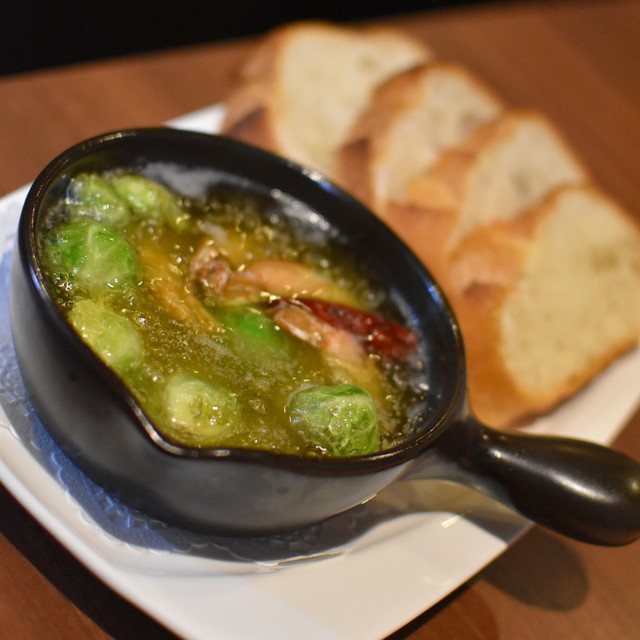 特徴的な長い手が無いので赤座エビではなく、アルゼンチン赤海老かもしれませんが、ぱっくりと割って焼かれた海老は香ばしくて美味しいですね。
