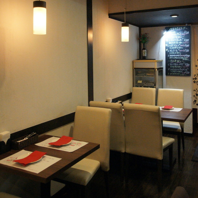 カウンター1本と2人用テーブルが2卓、4人用テーブルが1卓という小さなお店をマスターと奥様の2人で切り盛りしているアットホームなお店です。