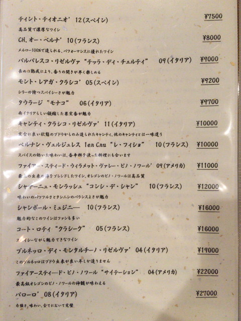 リーズナブルにも楽しめますが、ボトルで注文し、ある程度の価格を払ったほうがお店の真価が味わえるでしょう。