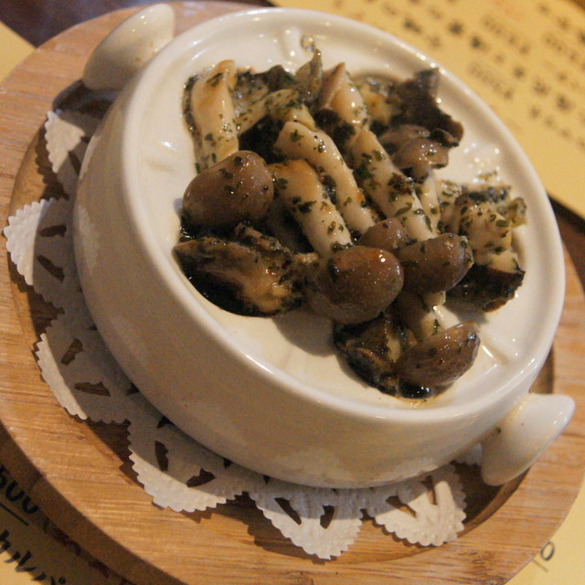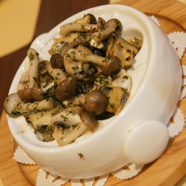 私はニンニク大好きなので、ニンニクをいただこうかと思ったら、間違ってマッシュルームを食べてしまいました。暗い店内では判別が難しいですね。