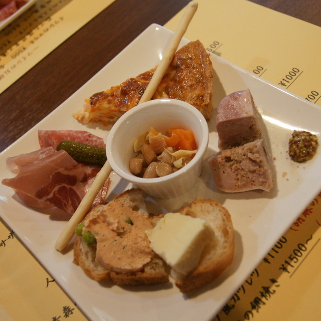 1杯と前菜の盛り合わせで1,100円のセットです。高いワインを選んだ場合は差額が必要です。