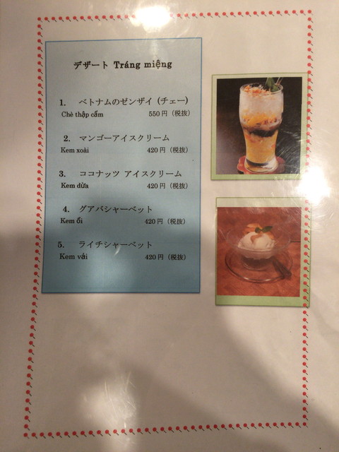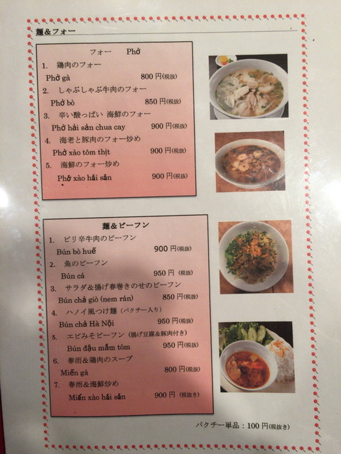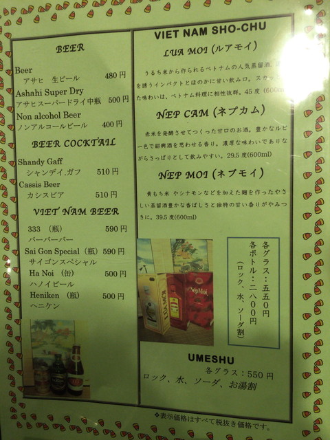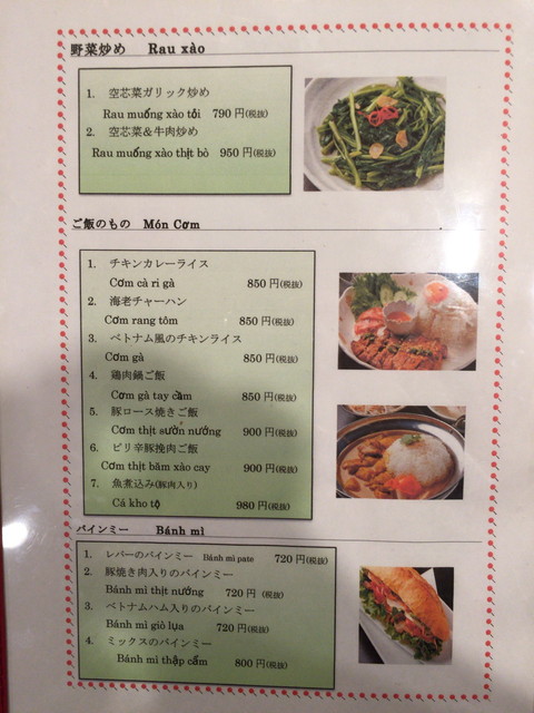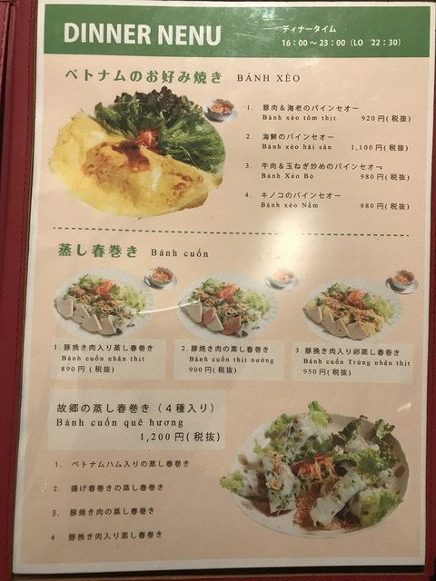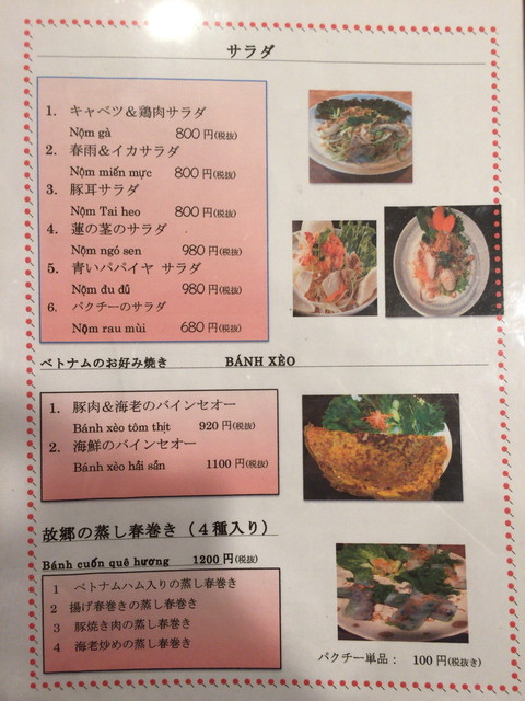 メニューは、純ベトナム料理で、タイ料理などの近隣の国の料理は扱わない本格的なものです。